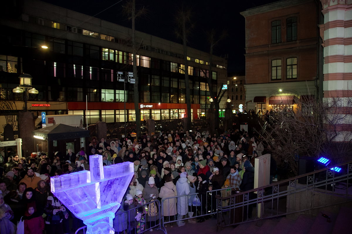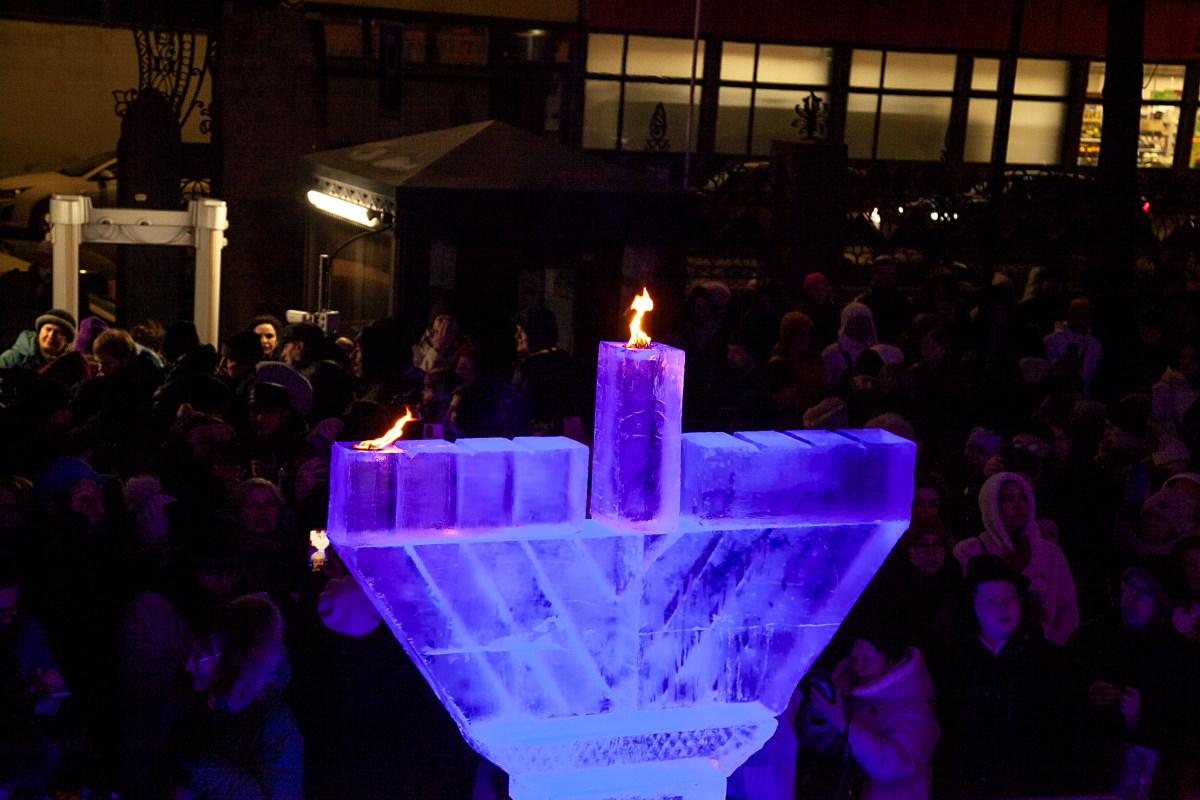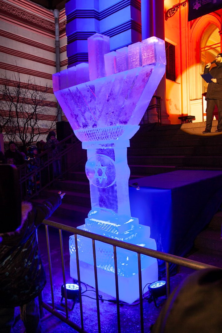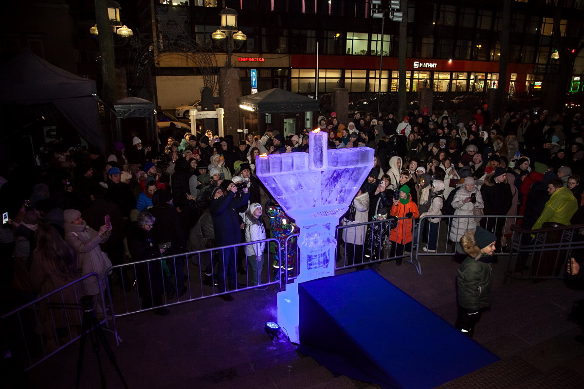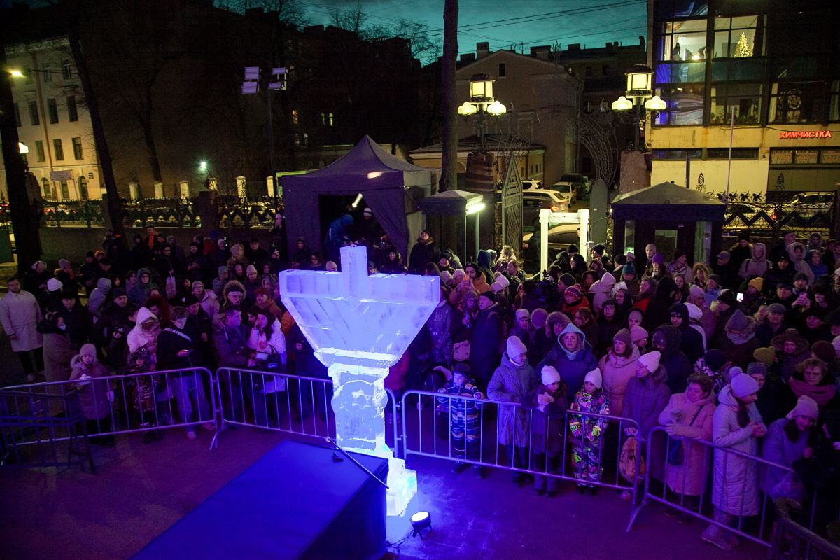 В этом году впервые в Петербурге праздник украсила ханукия, сделанная из льда. Свечи на ней зажег главный раввин Петербурга М. М. Певзнер.