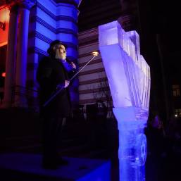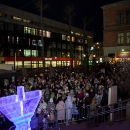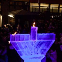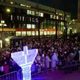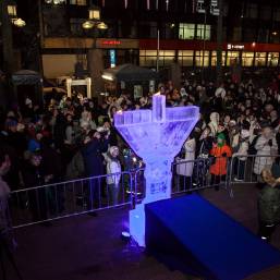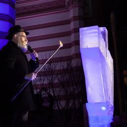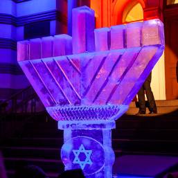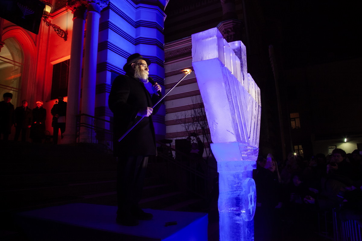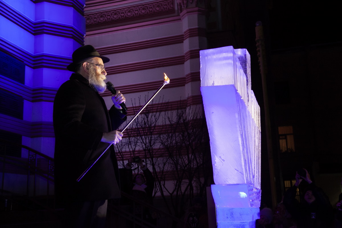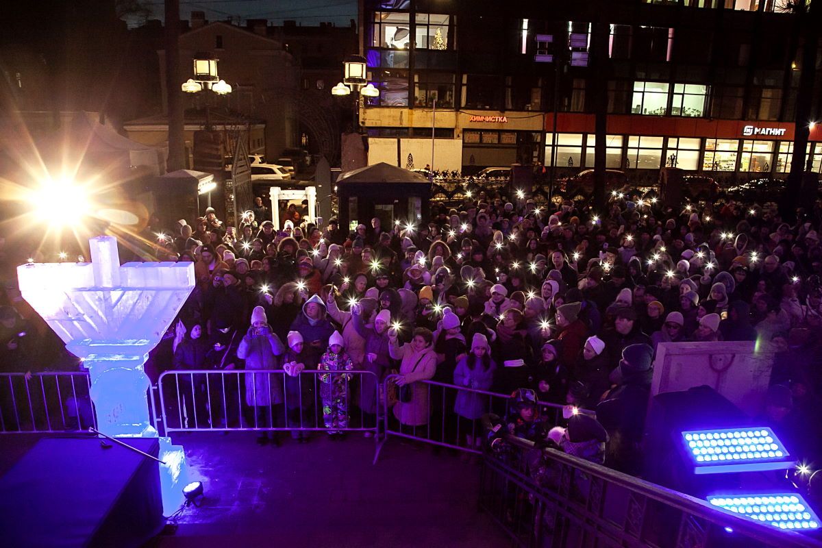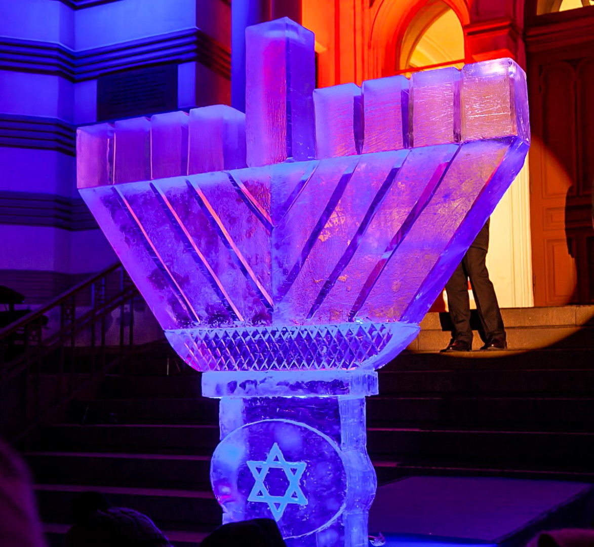 В этом году впервые в Петербурге праздник украсила ханукия, сделанная из льда. Свечи на ней зажег главный раввин Петербурга М. М. Певзнер.