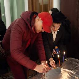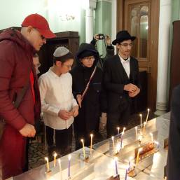 Все желающие смогли с помощью раввинов Синагоге и ребят из школы «Любавич» исполнить заповедь о зажигании ханукальных свечей.